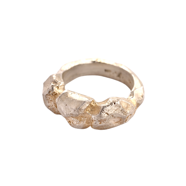 Der Knock’em out Ring ist weit mehr als nur ein Accessoire – er ist ein kraftvolles Statement am Finger. Seine absichtlich rohe Oberfläche wirkt wie direkt von einem massiven Edelstein abgeformt und verleiht dem massiven Silber eine urwüchsige, skulpturale Ästhetik. Perfekt für alle, die Design mit Ecken und Kanten suchen.